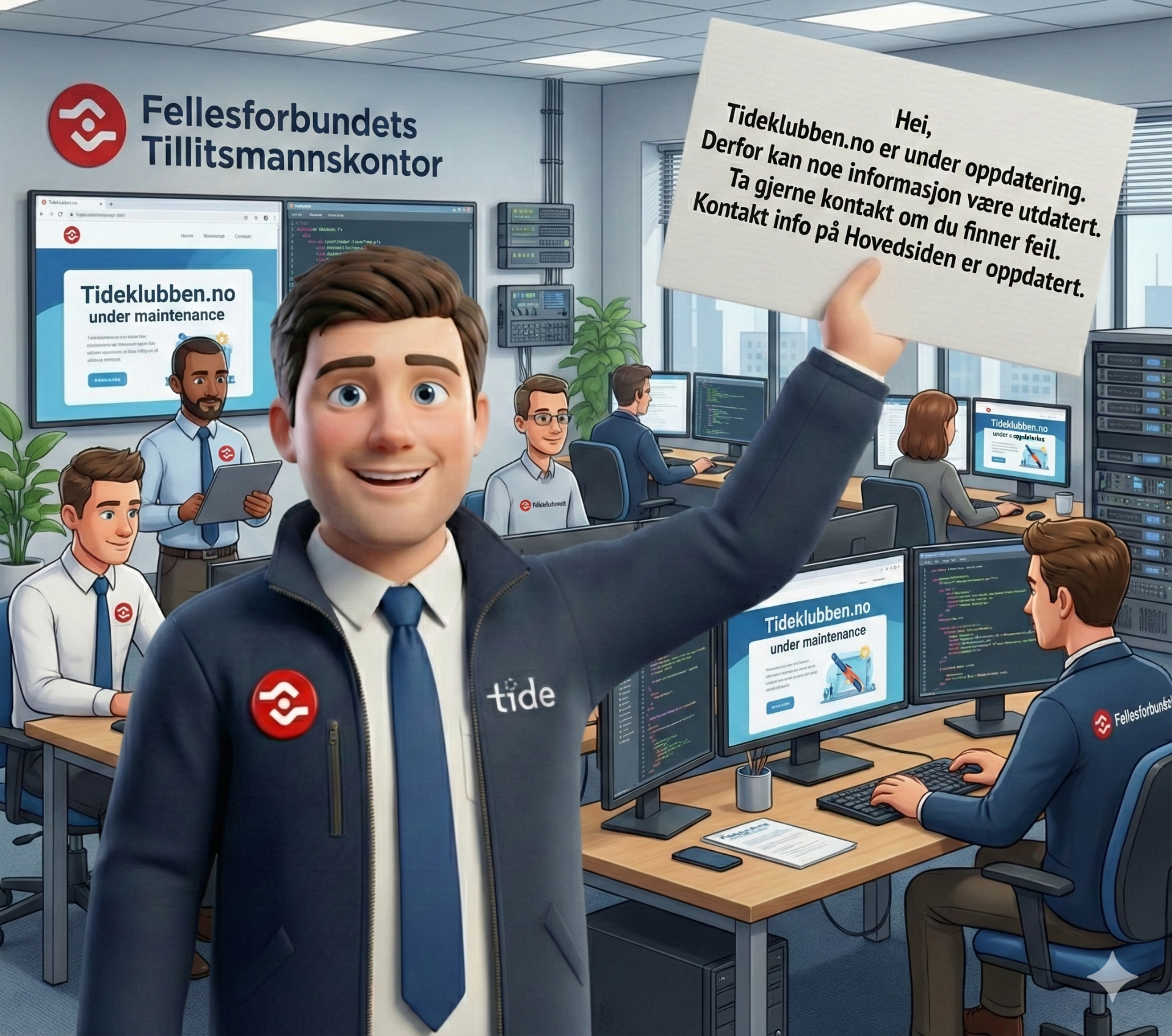 Sidene er under utvikling. Du kan som medlem få tilgang til mer lokal informasjon ved å lage deg en bruker. Jobber du i Tide og er medlem i Fellesforbundet vil du få tilgang til lokale sider. Vær obs på litt behandlingstid når du søker om egen konto på denne medlems siden.
